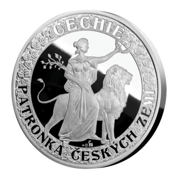 Alegorická postava ochránkyně českých zemí doznala velké obliby v době národního obrození. Čeští národní buditelé rádi pracovali s jejím odkazem a Čechie se v tomto období stala častým námětem uměleckých děl. Pamětní ražba zobrazuje slavnou Čechii, patronku českých zemí, kráčející po boku bílého lva, symbolu české státnosti.