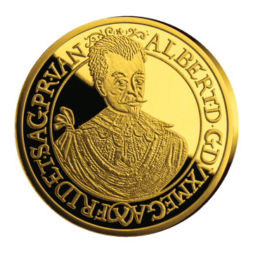 Výjimečná pamětní ražba z ryzího zlata, která na své přední straně do detailu vyobrazuje averz původního desetidukátu Albrechta z Valdštejna z roku 1631, jež byl v aukční síni vydražen za 10,5 milionů korun.