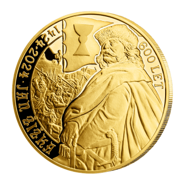 Oficiální pamětní mince zpodobňující Jana Žižku k uctění 600 let od jeho úmrtí.