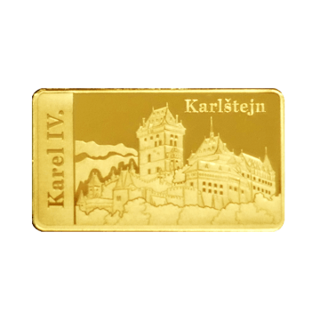 Pamětní cihlička zobrazuje hrad Karlštejn, který patří k našim nejvýznamnějším a nejznámějším pamětihodnostem. Na jeho stavbu, která začala v polovině 14. století, dohlížel osobně jeho zakladatel, český král a římský císař Karel IV.