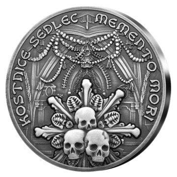 Kostnice Sedlec – memento mori na ražbě z 5 oz ryzího stříbra