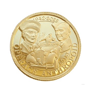 Ražba k uctění památky aktérů operace Anthropoid a k připomenutí 80. výročí této největší diverzní akce československého válečného odboje zobrazuje nad realistickým výjevem útoku na zastupujícího říšského protektora Reinharda Heydricha portréty jeho vykonavatelů, statečných parašutistů Jana Kubiše a Jozefa Gabčíka.