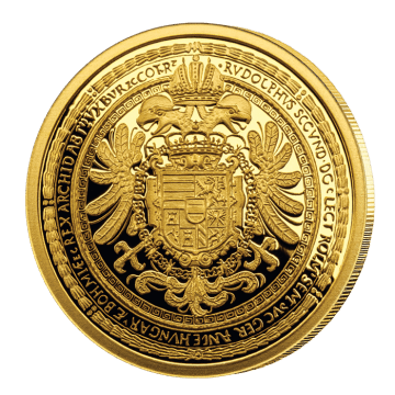 Dominantním prvkem věrného vyobrazení pečeti Rudolfa II. je císařský dvouhlavý orel s rozepjatými křídly s výrazně členěným peřím, typický symbol Svaté říše římské. Nad jeho hlavami se nachází rakouská císařská koruna, která původně byla osobní korunou císaře Rudolfa II. V pražské dvorské dílně ji roku 1602 na Rudolfovu objednávku zhotovil jeho komorní zlatník Jan Vermeyen, jeden z nejvýznamnějších středoevropských mistrů své doby. Na prsou orla je umístěn velký štít členěný na několik polí, která reprezentují jednotlivé državy spadající pod vládu Rudolfa II. Celý štít je obkroužen řetězem Řádu zlatého rouna, jehož členy byli habsburští císaři od Karla V. Opis v okruží ve zkratkách uvádí: RVDOLPHVS SECVNDVS DEI GRATIA ELECTVS ROMANORVM IMPERATOR SEMPER AVGVSTVS GERMANIAE HVNGARIAE BOHEMIAE REX ARCHIDVX AVSTRIAE DUX BVRGVNDIAE STYRIAE CARINTHIAE CARNIOLAE MARCHIO MORAVIAE ETC, což v překladu znamená Rudolf Druhý, z Boží milosti zvolený císař římský, vždy vznešený, král německý, uherský, český, arcivévoda rakouský, vévoda burgundský, štýrský, korutanský, kraňský, markrabě moravský atd.