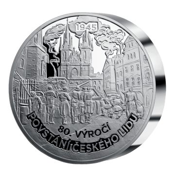 V květnu 1945 vypuklo v Protektorátu Čechy a Morava povstání proti německým okupantům. Nejsilnější boje zuřily v Praze. Motiv pamětní ražby je inspirovaný událostmi, které se v květnu 1945 odehrály právě v hlavním městě. Týnský chrám na Staroměstském náměstí, kam až pronikly německé tanky, zahaluje kouř z okolních hořících domů. V popředí je pak znázorněna jedna z barikád, kterých v Praze v noci z 5. na 6. května vyrostlo asi 1600 a pomáhalo je vystavět na sto tisíc dobrovolníků.
