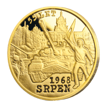 Unikátní pamětní ražba připomíná 55. výročí invaze vojsk Varšavské smlouvy do Československa v srpnu roku 1968. Averzu ražby dominuje sovětský tank a mladý muž s vlajkou vyjadřující odpor a nesouhlas občanů s okupací. V pozadí je budova Národního muzea, které bylo během srpnových událostí ostřelováno - zásahy jsou na jeho fasádě patrné dodnes.