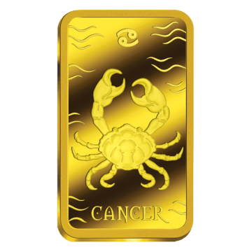 Averzu zlaté cihličky dominuje realistické vyobrazení znamení Raka v horní části doplněné o jeho symbol a v dolní části o latinský název CANCER. Na pozadí jsou vyvedeny symboly vody, protože Rak patří mezi vodní znamení zvěrokruhu.